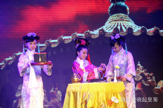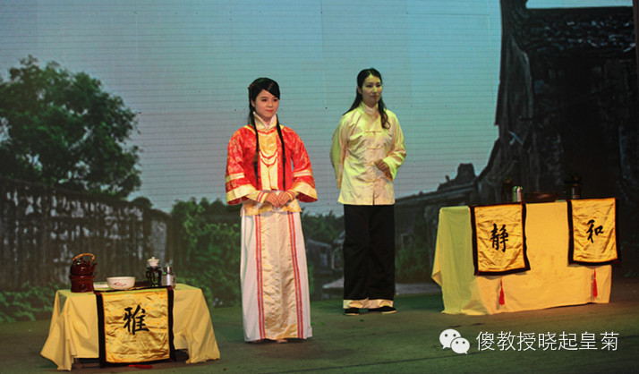 请欣赏茶艺表演《晓起菊花皇》。